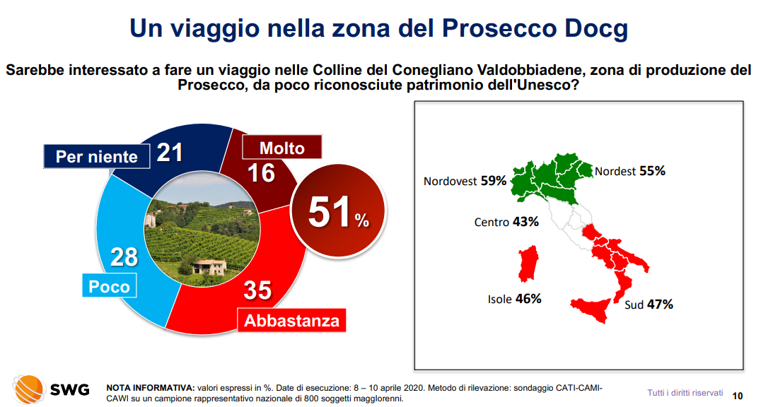 Il 51% degli italiani si manifesta interessato a visitare il territorio del Conegliano Valdobbiadene nel prossimo futuro.