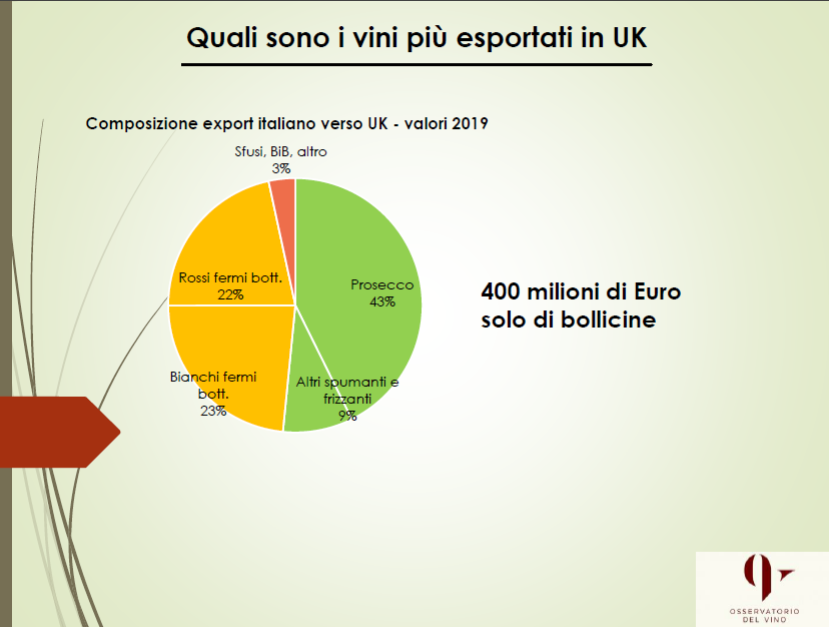 Infine, secondo quanto detto al webinar UIV dal segretario generale del Comité Européen Entreprises Vins (CEEV), Ignacio Sanchez, «Un terzo scenario tra il deal e il no deal potrebbe essere una proroga dell’attuale status quo in regime temporaneo sino a eventuale accordo». All’incontro hanno partecipato, tra gli altri, il presidente di Unione Italiana Vini, Ernesto Abbona, il direttore Ice Londra, Ferdinando Pastore, e la responsabile help desk Brexit Ice Londra, Gabriella Migliore.
